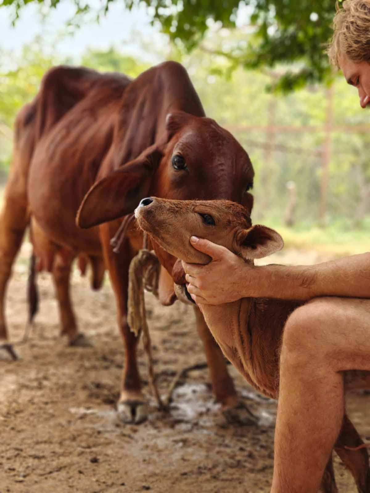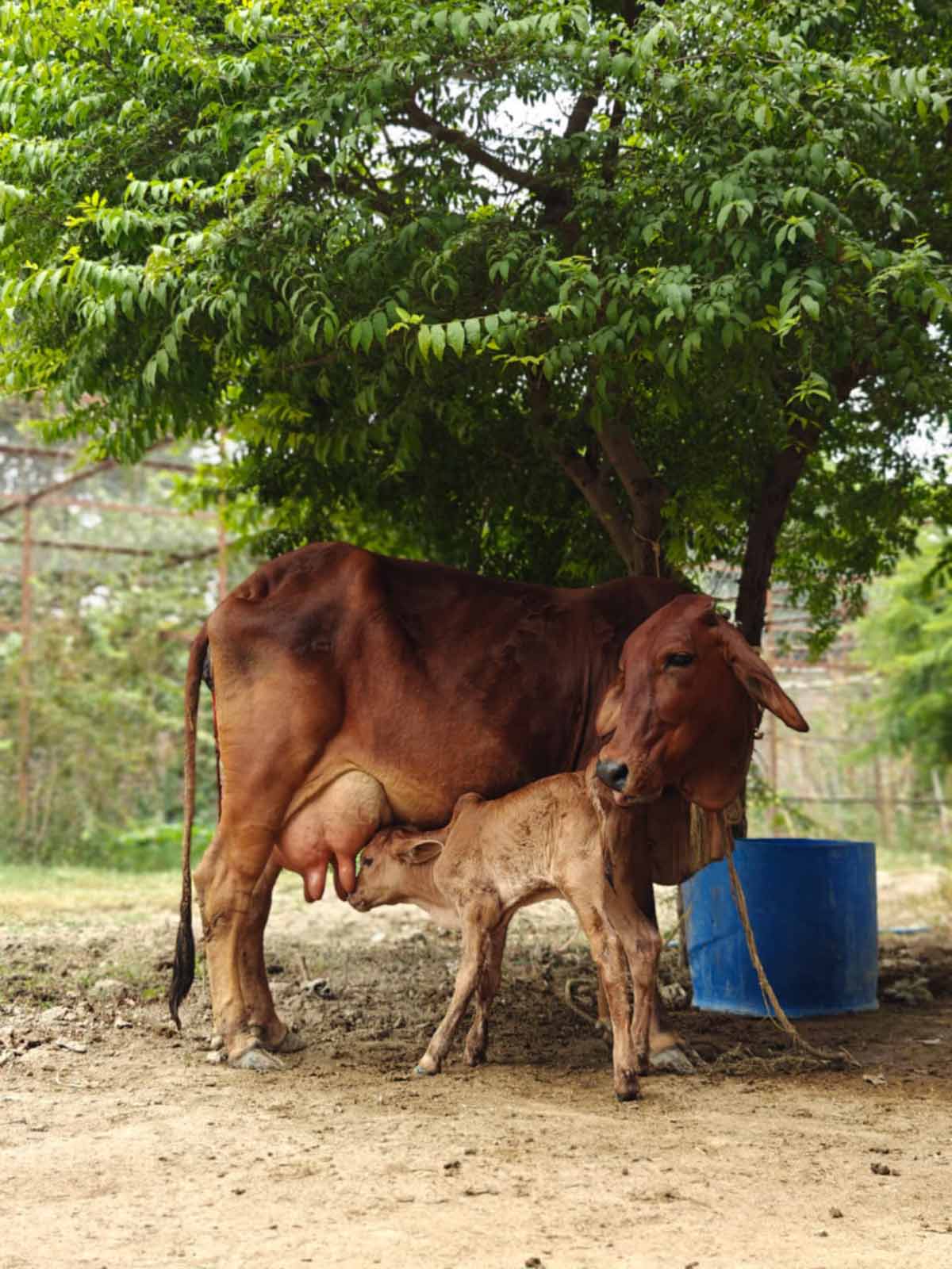 On the auspicious occasion of the snāna-yātrā of Śrī Jagannāthadeva, our ashram cow Bahula, gave birth to a healthy baby bull called Raja.